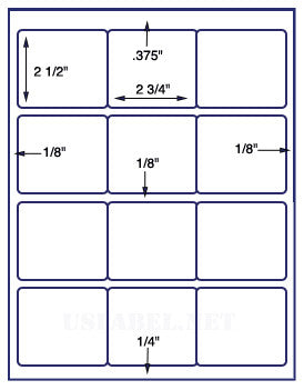 US3064-2 3/4''x2 1/2''-12 up on a 8 1/2" x 11" label sheet.