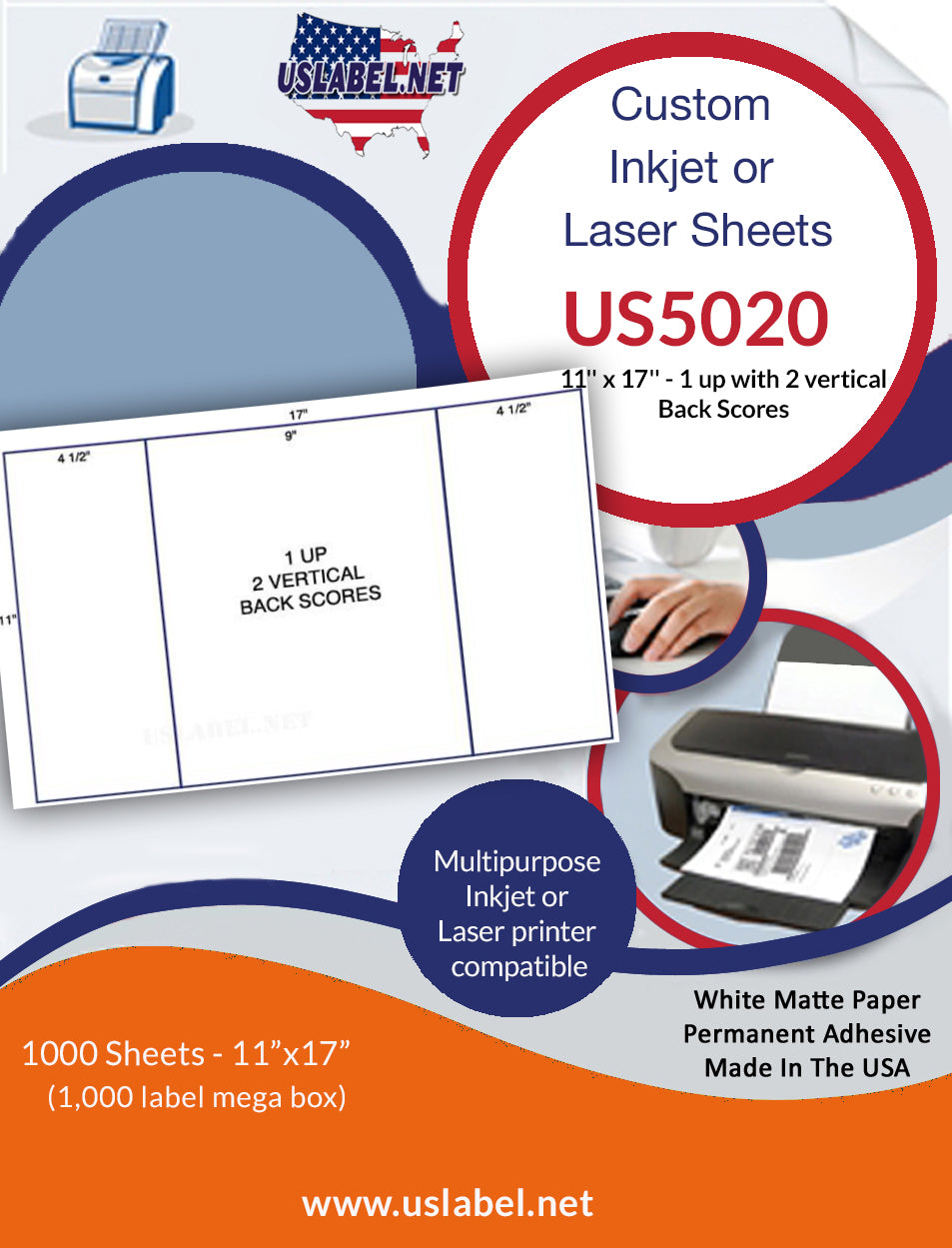 US5020-1 up 11'' x 17'' label with 2 vertical Back Scores.