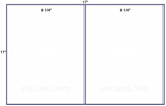This is a 2 up 8 1/4'' x 11'' 2 wide label on a 11'' x 17'' sheet - 2,000 labels. Now available in 39 different label stocks. Custom Flood Coating and scoring available. For inkjet or Digital laser printing. Make your selection under Label & Adhesive Options.