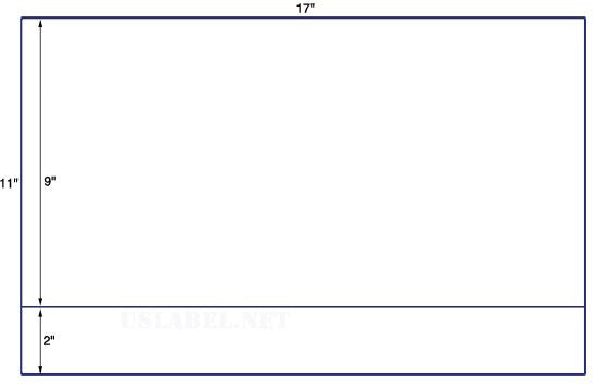 This is a 1 up 17" x 9" & 2" x 17" on a 11'' x 17'' - 1,000 Sheets Standard label sstock. Now available in 39 different label stocks. Custom Flood Coating and scoring available. For inkjet or Digital laser printing. Make your selection under Label & Adhesive Options.