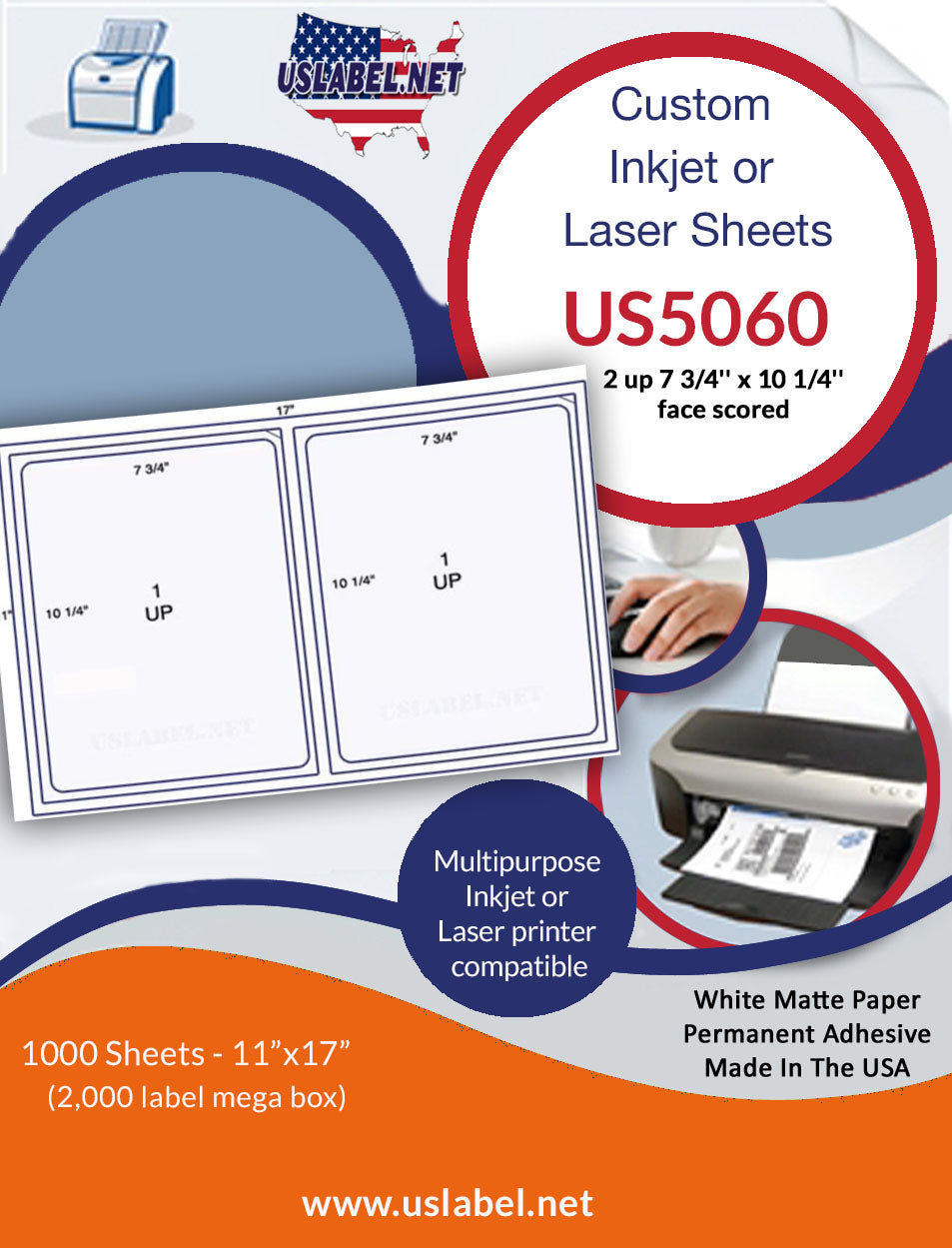 US5060- 2 up 7 3/4'' x 10 1/4'' label on a 11" x 17" sheet.