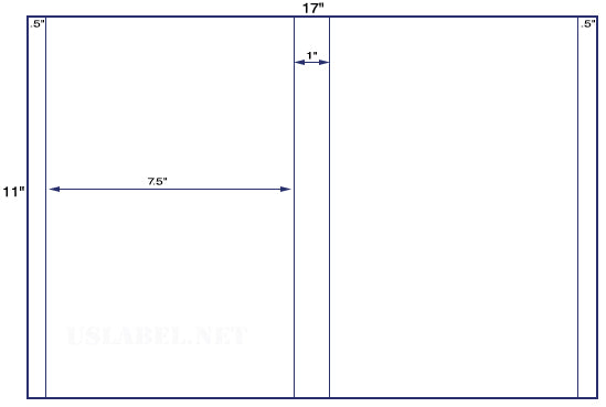 This is a 2 up 7.5'' x 11'' on a 11'' x 17'' sheet as laid out in the diagram. Now available in 40 different label stocks. Custom Flood Coating and scoring available. For inkjet, laser or digital printing. Make your selection under the Label & Adhesive Options.
