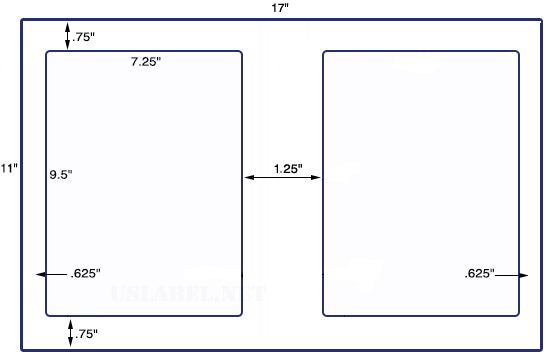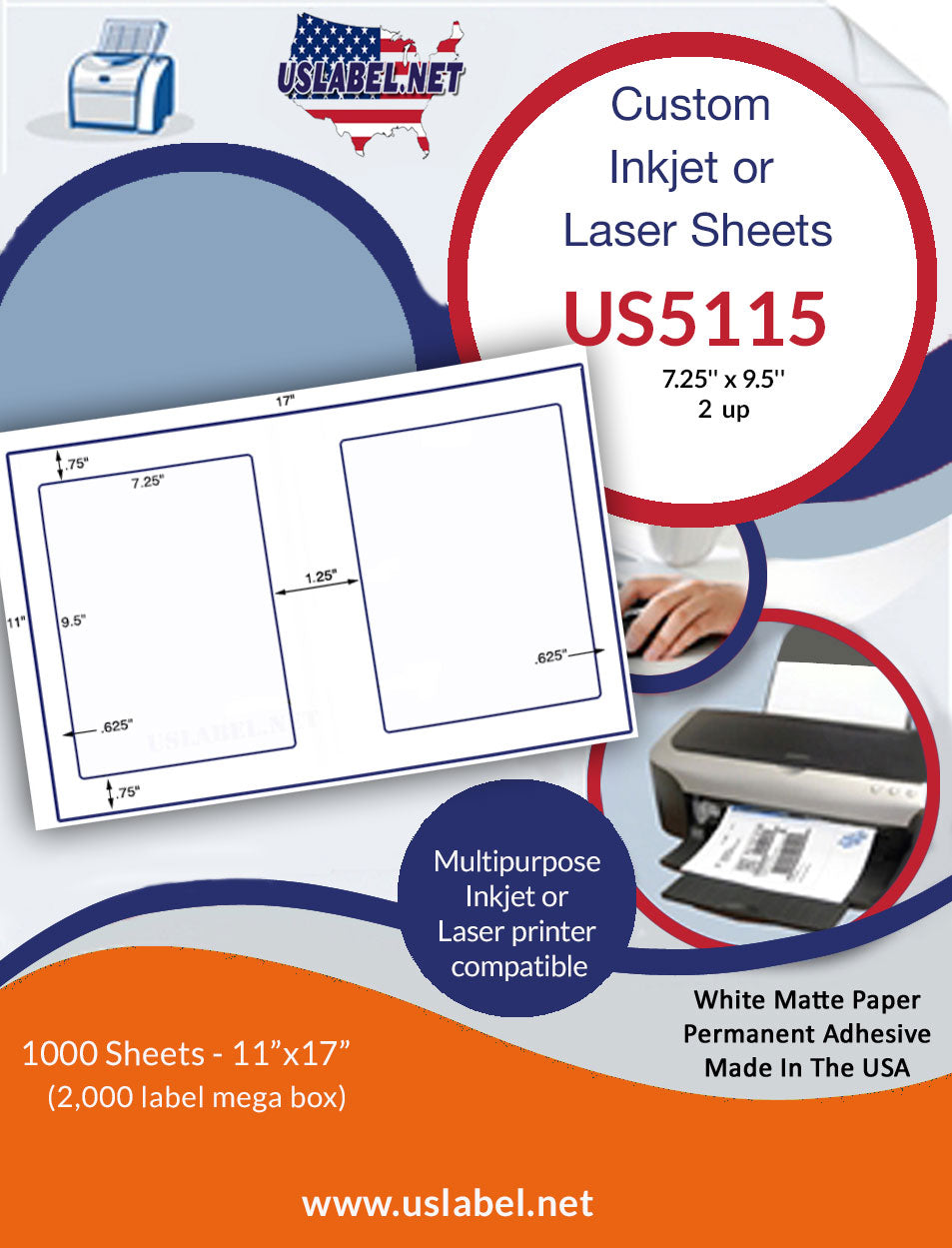 US5115 - 2 up 7.25'' x 9.5'' label on a 11'' x 17'' sheet.