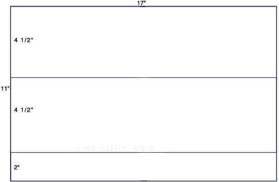 This is a 17'' x 4 1/2''and a 2" x 17" on a 11'' x 17'' sheet - 3,000 labels. Now available in 39 different label stocks. Custom Flood Coating and scoring available. Make your selection under Label & Adhesive Options.