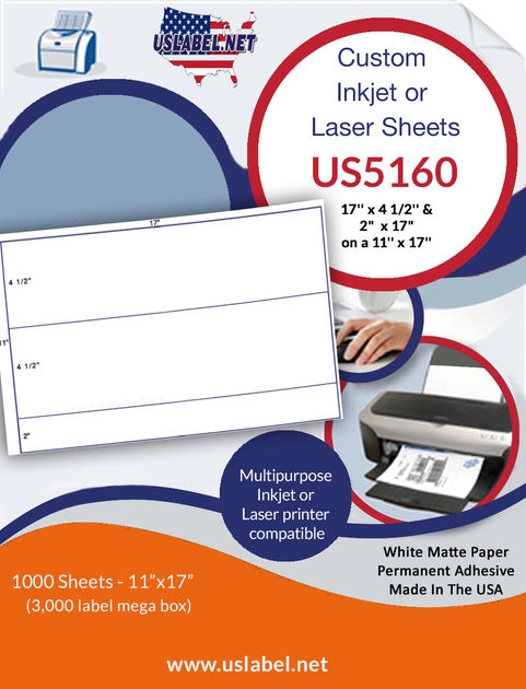 US5160-4 1/2'' x 17"& 2" x 17" label on a 11'' x 17'' sheet.