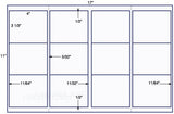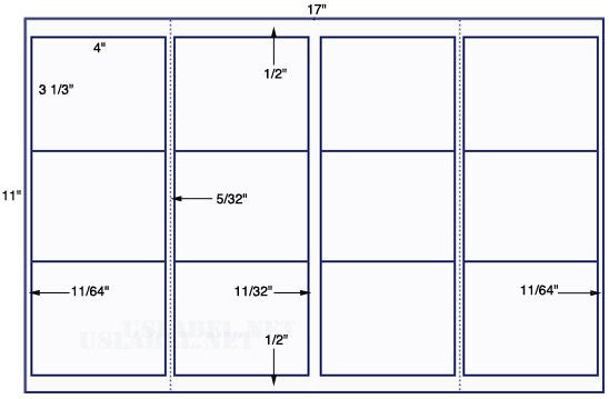 This is a 4'' x 3 1/3'' Square corner with vertical perforations centered 12 up label 11'' x 17'' sheet - 12,000 labels. Now available in more than 39 different label stocks. Make your selection under Label & Adhesive Options.