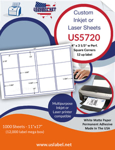 US5720-4''x3 1/3''Sq cr. w/perf-12 up 11''x17''sheet.