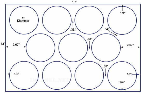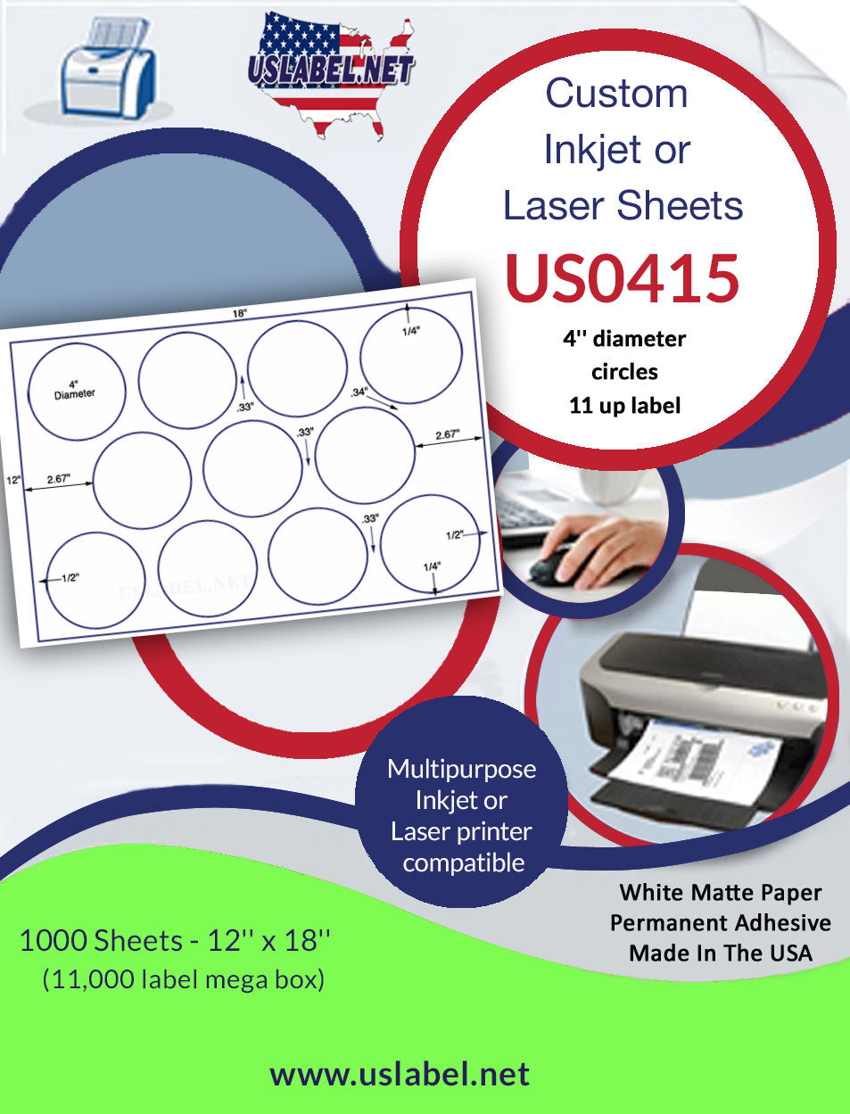 US0415-11 up-4'' circle labels on a 12'' x 18'' sheet.