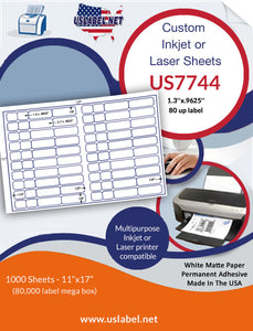 The US7744-1.3''x.9625''-80 up label on a 11'' x 17''sheet. is the high quality product is what you need, when you need it and will keep fresh a very long time good value.