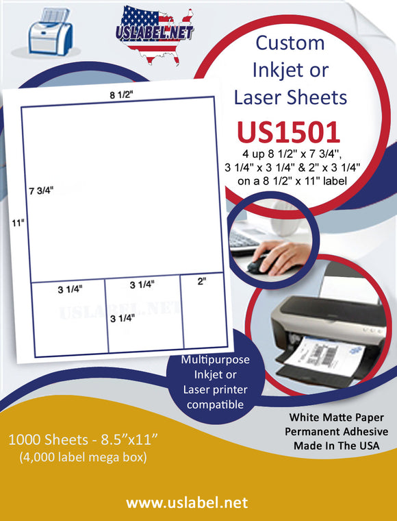 Inkjet or Laser 8 1/2" x 11" Label Sheets at uslabel.net.