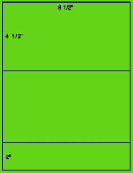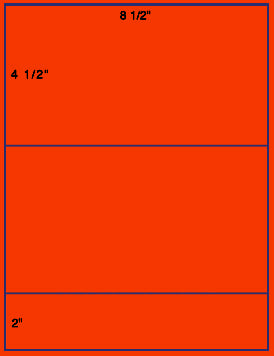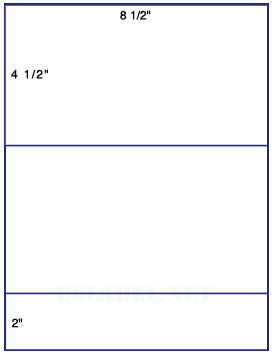 This is a 2 up 8 1/2" x 4 1/2" with a 2" x 11" single label on a 8 1/2" x 11" sheet - 2000 labels. Works with all Laser and Inkjet Printers as well as can be offset printed and digital printed. Choose from over 37 options under label and adhesive options.US1160 - 8 1/2'' x 4 1/2'' on a 8 1/2" x 11" label sheet.