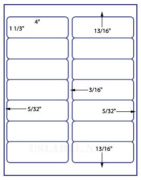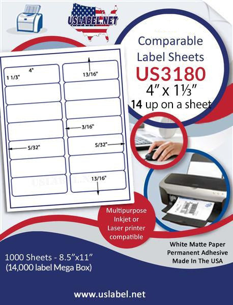 This is a 14 up 4'' x 1 1/3'' - Brand Name Comparable easy peel label on a 8 1/2" x 11" inkjet or laser sheet.1,000 sheets = 14,000 labels. Make your selection under the Label & Adhesive Options. US3180-4''x1 1/3'' on a 8 1/2"x11" label sheet.