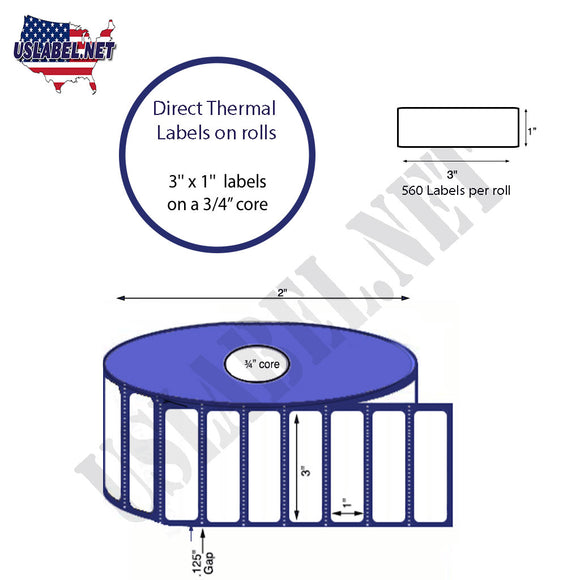 Direct Thermal Labels on 3/4",1" and 3" cores.
