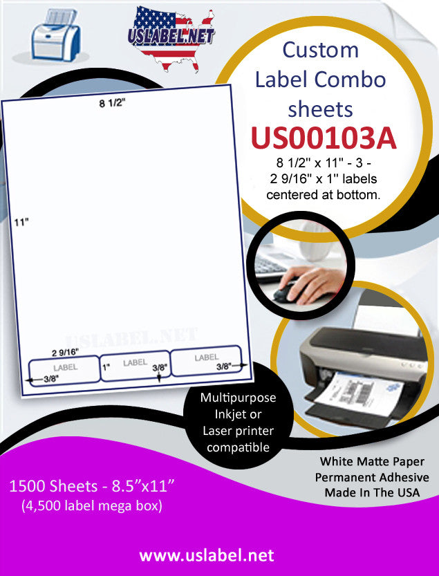 US00103A-8.5''x11'' integrated sheet 3-2 9/16'' x 1'' labels at bottom