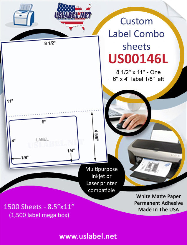 US00146L/R - 8 1/2''x11''-integrated sheet One 6'' x 4'' label 1/8'' L or R