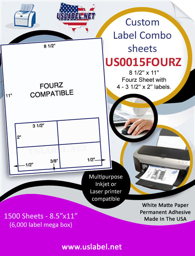 US0015FOURZ-8.5''x11''Fourz Sheet w/ 4 3 1/2'' x 2'' labels