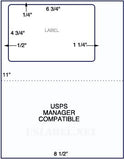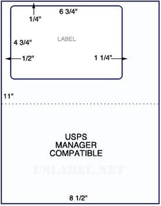 This is our 8.5" x 11" CLICK-N-SHIP form. One label 1/2" from left top measures 6 3/4" wide x 4 3/4" high. Label is 1/2" from left and 1/4" from top of the sheet. Full perforation at 5 7/8" from top of sheet. USPS Manager Compatible and with most laser and inkjet 24# white bond. Label comes with a permanent adhesive. Standard cut-sheet form size Paper: White 24# Bond 1,500 Sheets in a box.Weight 28lbs. Buy in bulk and save 20% on 68 boxes (102,000 sheets)on a pallet and free shipping to the lower 48 states free shipping to the lower 48 states. Allow extra time for delivery of full pallet loads.