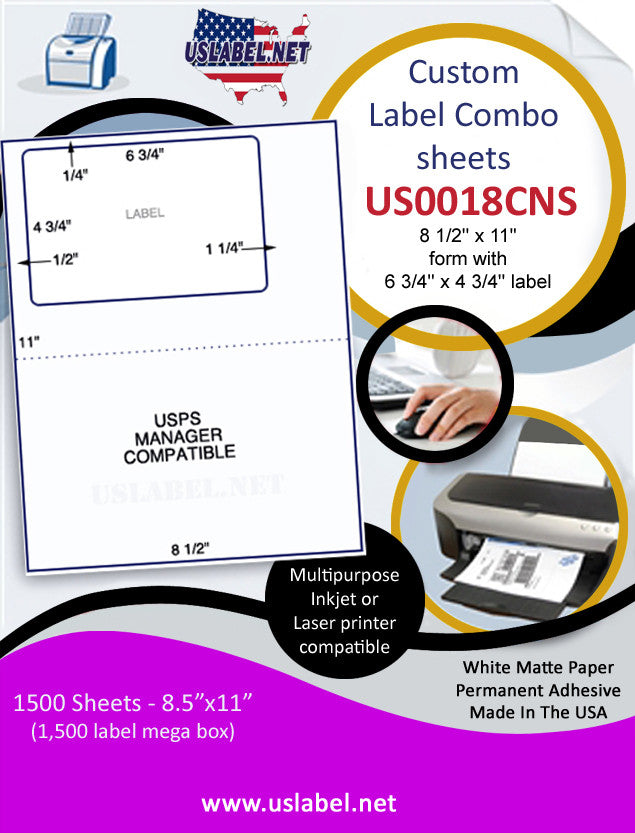 US0018CNS-8 1/2'' x 11''integrated sheet with 6 3/4'' x 4 3/4'' label