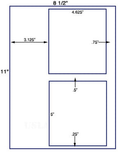 This is a 4.625" x 5" label with square corners on a 8 1/2" x 11" sheet. - 2,000 labels. Works with all Laser and Inkjet Printers as well as can be offset printed and digital printed. Choose from over 39 label types under label and adhesive options.US1210-4.625''x 5''-2 up on a 8 1/2" x 11" label sheet.