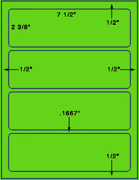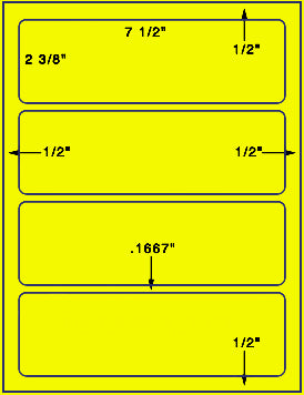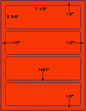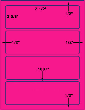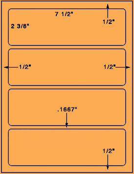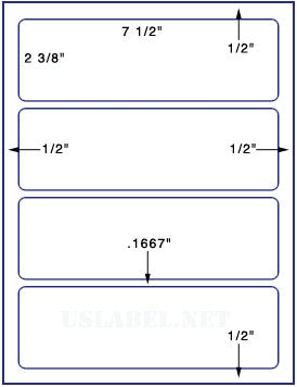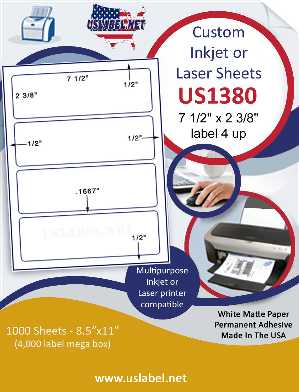 This is a 7 1/2'' x 2 3/8" label 4 up on a 8 1/2" x 11" sheet. 4,000 labels in a box. Works with all Laser and Inkjet Printers as well as can be offset printed and digital printed. Choose from over 39 Label stocks under Label and Adhesive options.US1380-7 1/2'' x 2 3/8''- 4 up -8 1/2"x11" label sheet.