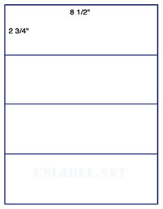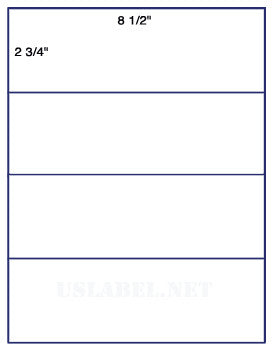 US1381-8 1/2'' x 2 3/4''-4 up -8 1/2"x11" label sheet.
