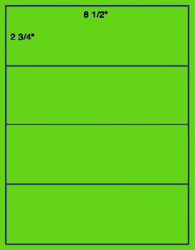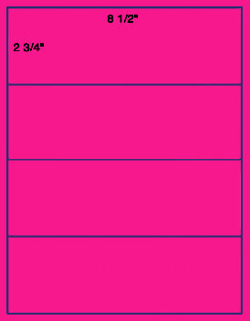 This is a 8 1/2'' x 2 3/4'' 4 up on a 8 1/2" x 11" sheet. 4,000 labels in the box. Works with all Laser and Inkjet Printers as well as can be offset printed and digital printed. Choose from over 39 Label Stocks under Label and Adhesive options.US1381-8 1/2'' x 2 3/4''-4 up -8 1/2"x11" label sheet.