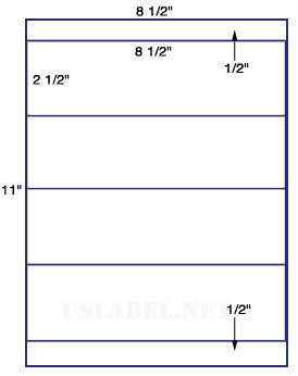 US1383 - 8 1/2'' x 2 1/2'' - 4 up on a 8 1/2" x 11" label sheet