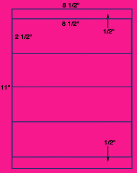 This is a 4 up 8 1/2'' x 2 1/2'' label on a 8 1/2" x 11" label. 4,000 labels in then box Now available in over 37 different types. Make your selection under the Label & Adhesive Options.US1383 - 8 1/2'' x 2 1/2'' - 4 up  on a 8 1/2" x 11" label sheet