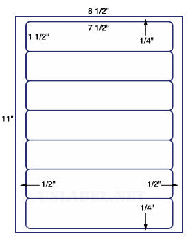 This is a 7 up 7 1/2'' x 1 1/2'' label on a 8 1/2" x 11" sheet 7,000 labels in the box. Now available in over 39 different label types. Make your selection under the Label & Adhesive Options.US1841-71/2''x1 1/2''-7 up on a 8 1/2" x 11" label sheet.