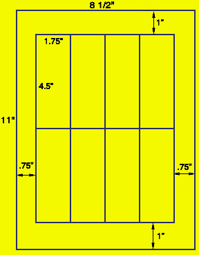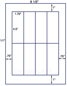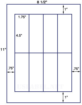 US1862-1.75''x4.5"-8 up label on a 8.5" x 11" label sheet.