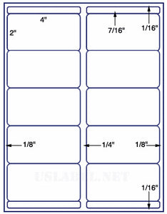 This is a 10 up 4 "x 2" label with with top and bottom bars on a 8 1/2" x 11" inkjet or laser sheet.1,000 sheet box = 10,000 Labels. More than 37 label and adhesive options Make your selection under the Label & Adhesive Options.
