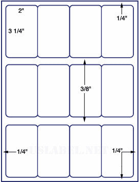 US3040-2''x3 1/4''-12 up on a 8 1/2" x 11" label sheet.