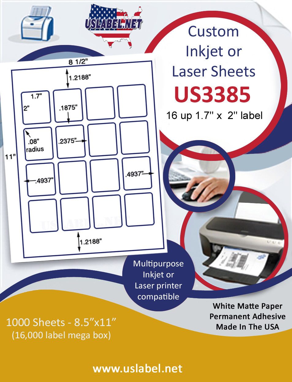 US3385-1.7''x2''-16 upon a 8 1/2"x11" label sheet.