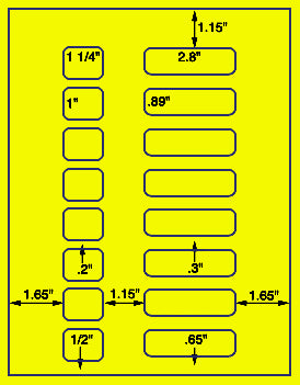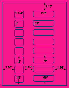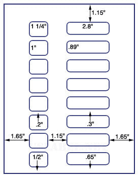This is a 16 up 1 1/4" x 1" and 2.8" x .9" label on a 8 1/2" x 11" sheet - 1,000 sheet box = 16,000 Labels.Make your selection from over 39 different label stocks under Label and adhesive options.US3382-1 1/4''x1''&2.8''x9''-16 up on a 8 1/2"x11" label sheet.