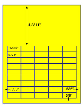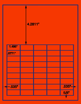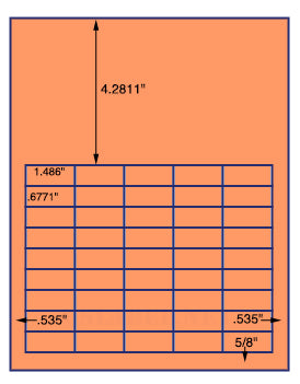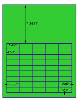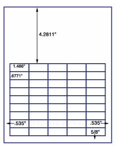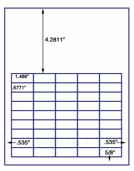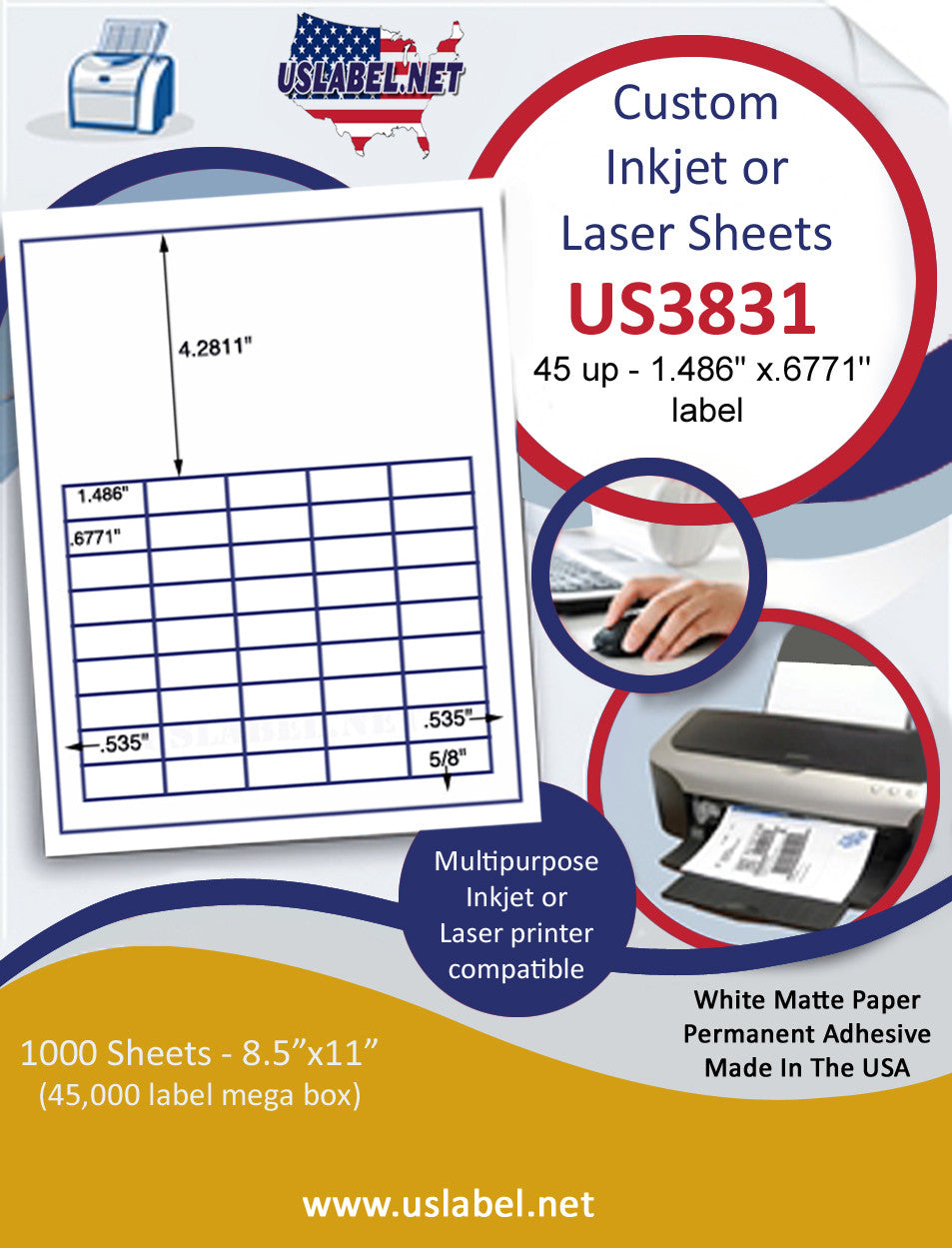 This is a 45 up - 1.486'' x.6771'' label on a 8 1/2" x 11" inkjet or laser label sheet.1,000 sheets = 45,000 labels. Now available in over 39 different label stocks.Make your selection under Label & Adhesive Options. US3831-1.486''x.6771''-45 up on a 8 1/2" x 11" label sheet.