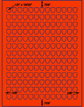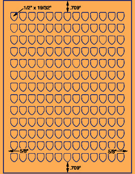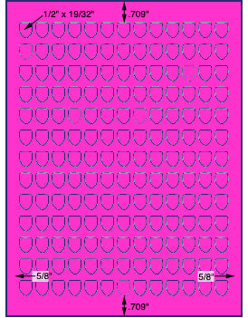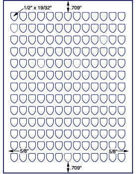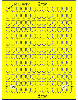 This is a 168 up- 1/2'' x 19/32'' Shield label on a 8 1/2" x 11" inkjet or laser sheet.1,000 sheets = 168,000 labels .Now available in over 39different label stocks.Make your selection under Label & Adhesive Options. US3985-1/2''x19/32''-168 up on a 8 1/2"x11" label sheet.