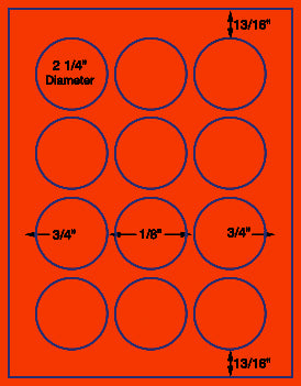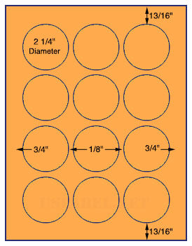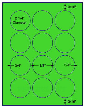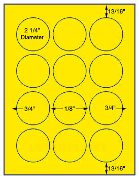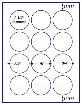 US4199 - 2 1/4'' circle 12 up on a 8 1/2" x 11" label sheet