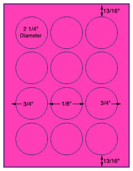 This is a 12 up 2 1/4" circle label on a 8 1/2" x 11" inkjet or laser sheet.1,000 sheet box = 12,000 Labels. Now available in over 37 different label stocks. Make your selection under Label & Adhesive Options.