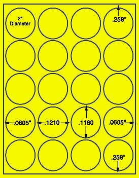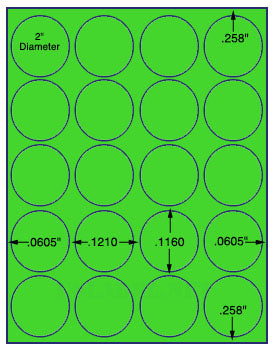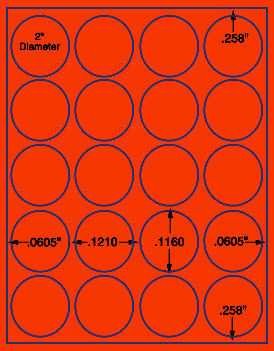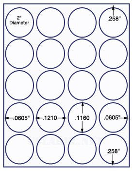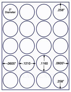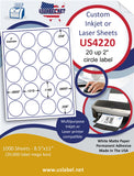 This is a 20 up 2" circle label on a 8 1/2" x 11" inkjet or laser sheet.1,000 sheet box = 20,000 Labels. Now available in more than 39 different label stocks.Make your selection under Label & Adhesive Options. US4220-2'' Circle 20 up on a 8 1/2" x 11" label sheet.