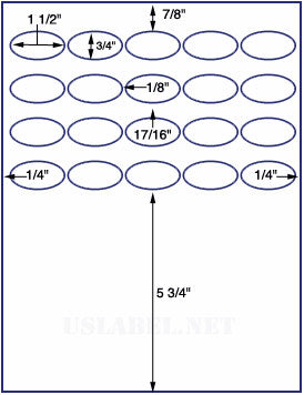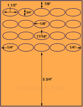This is a 15 up 1 1/2" x 3/4" Oval label on a 8 1/2" x 11" inkjet or laser sheet. 1,000 sheet box = 15,000 Labels. Now available in more than 39 different label stocks. Make your selection under the Label & Adhesive Options.