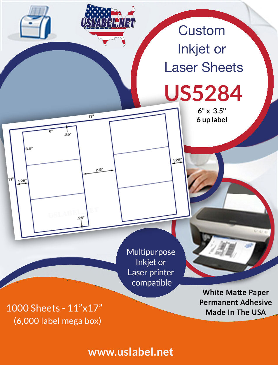 US5284-6''x3.5''-6 up on a 11'' x 17'' label sheet.