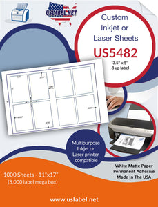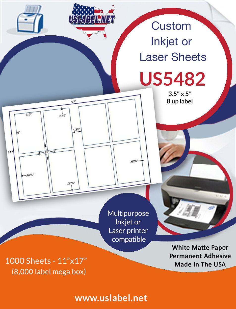US5482-3.5''x 5''-8 up label sq. cr.on a 11'' x 17'' sheet.