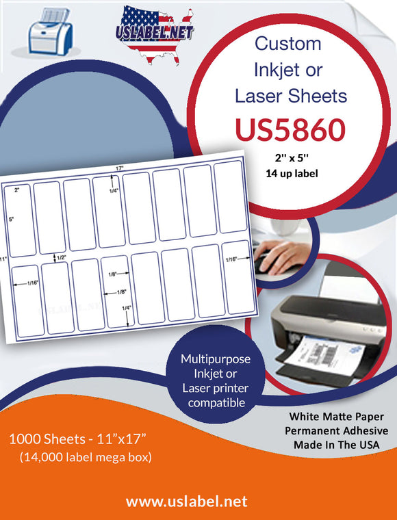 US5860 - 2'' x 5''-16 up label on a 11'' x 17'' sheet.