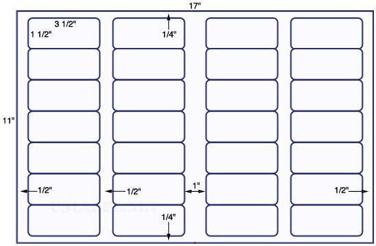 This is a 3 1/2'' x 1 1/2'' - 28 up label on a 11'' x 17'' sheet 28,000 labels. Now available in more than 39 different label stocks. Make your selection under Label & Adhesive Options.