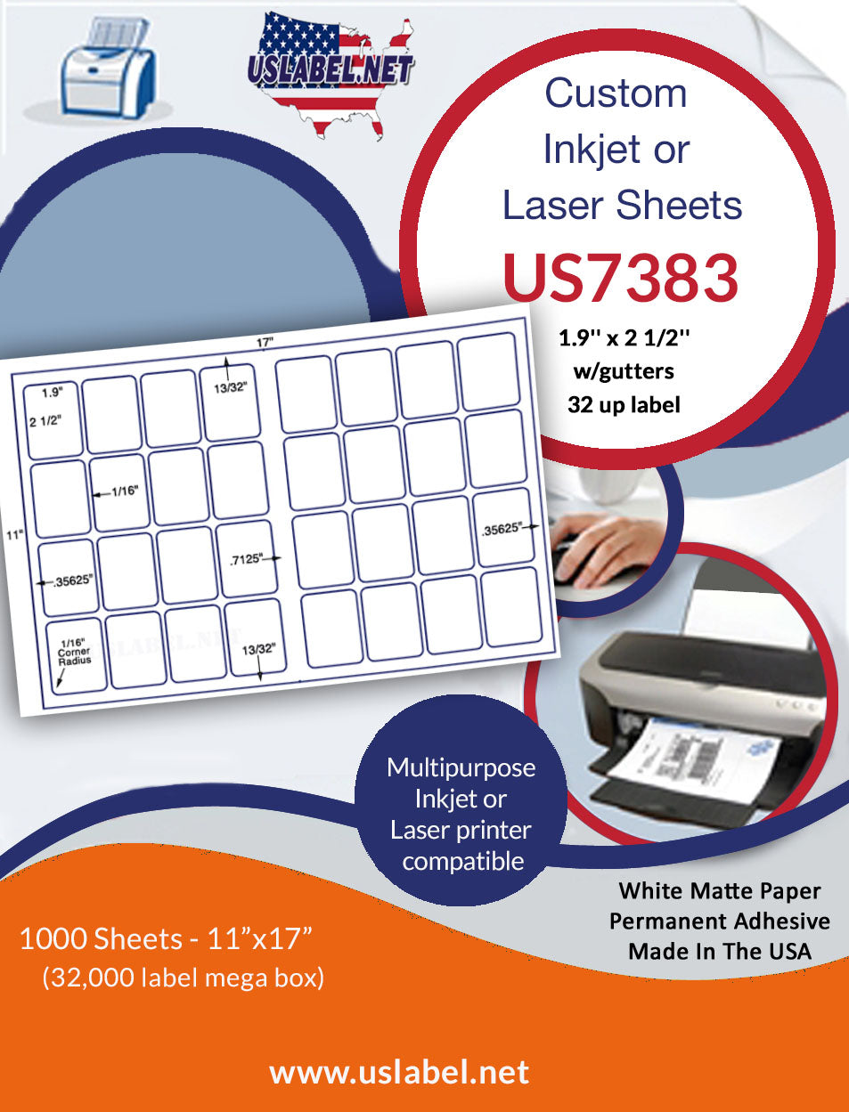 US7383-1.9''x2 1/2'' w/gutters-32 up on a 11'' x 17''sheet.