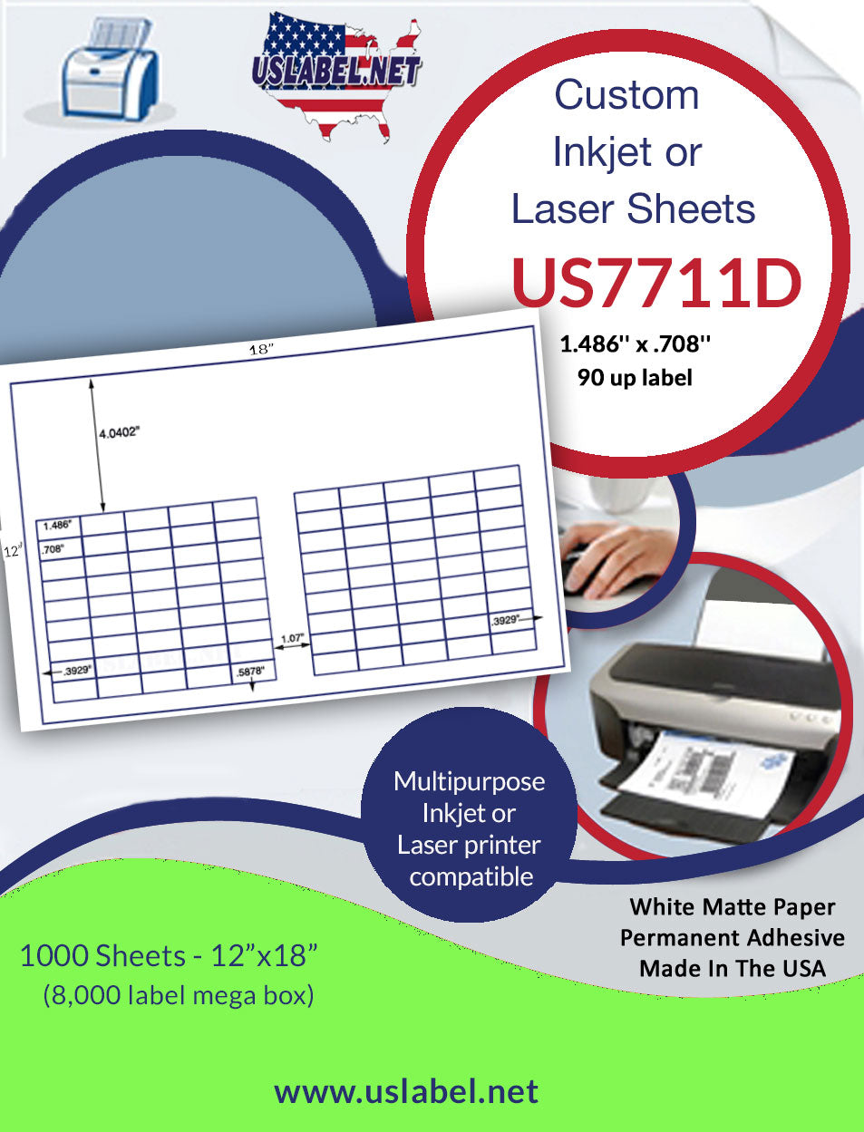 US7711D-90 up 1.486''x.708" label on a 12'' x 18'' sheet.