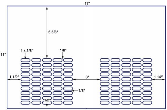 This is a 1" x 3/8" - 100 up label on a 11'' x 17'' sheet - 100,000 labels = 1,000 sheets. Now available in over 39 different label stocks. Make your selection under Label & Adhesive Options.