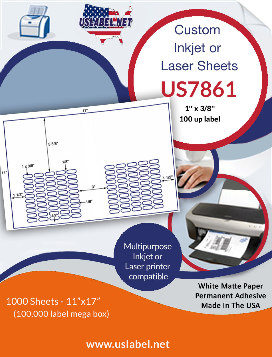 US7861-1''x3/8''-100 up label on a 11'' x 17''sheet.