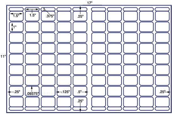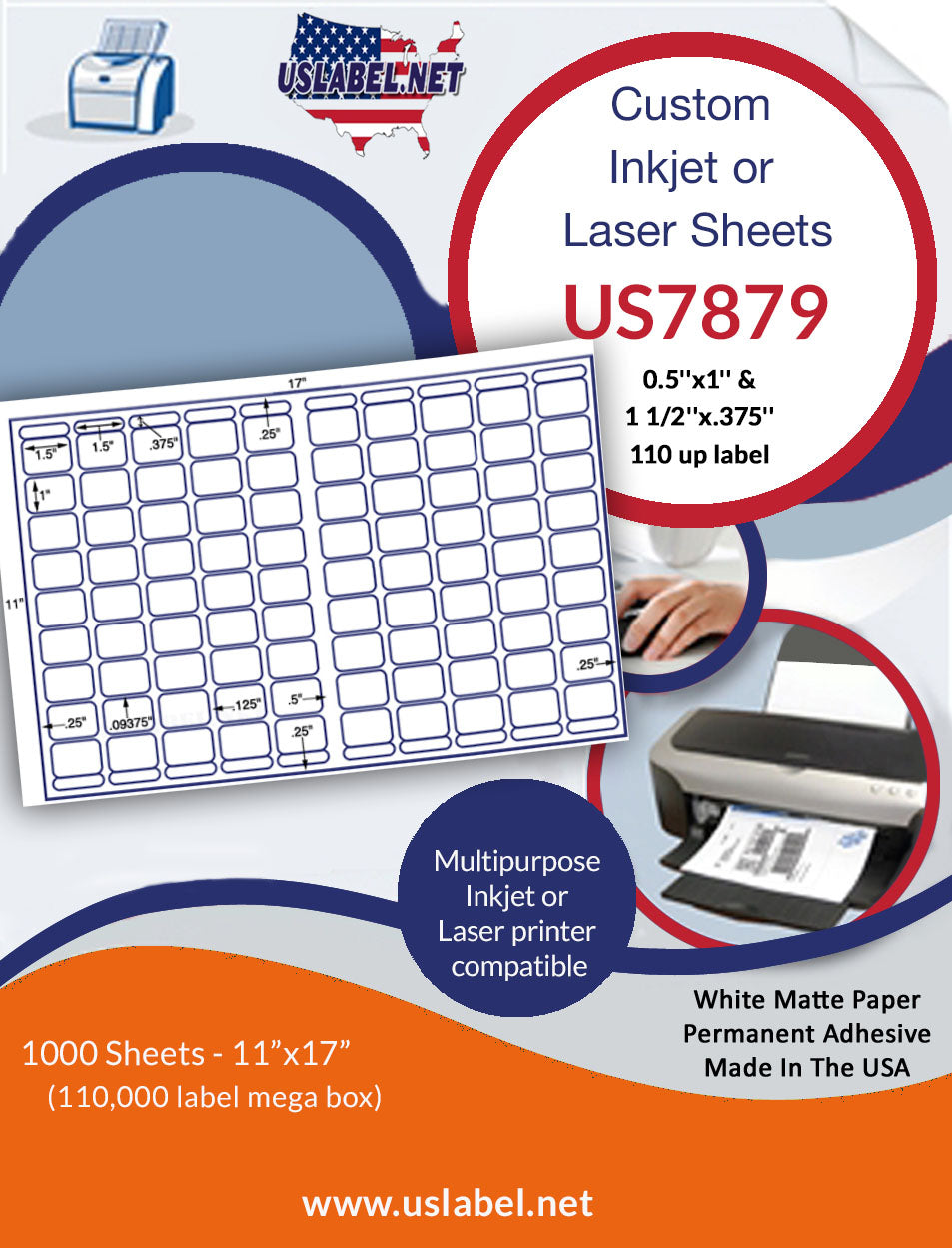 This is a .5'' x 1'' - 1 1/2'' x .375'' - 110 up Label on a 11'' x 17'' sheet - 110,000 labels = 1,000 sheets. Now available in over 39 different label stocks. Make your selection under Label & Adhesive Options.