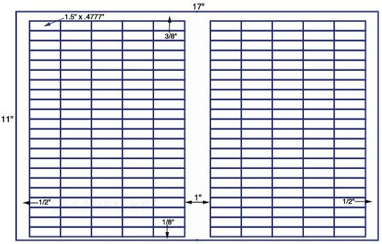 This is a 1 1/2" x .477" - 220 up on a 11'' x 17'' sheet - 220,000 labels. Now available in more than 39 different Label Stocks. Custom Flood Coating and scoring available. Make your selection under Label & Adhesive Options.